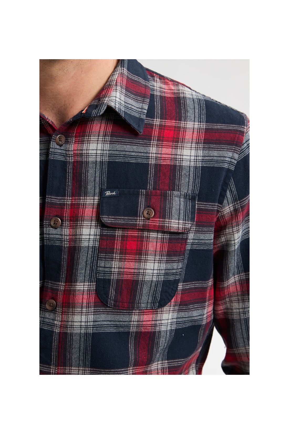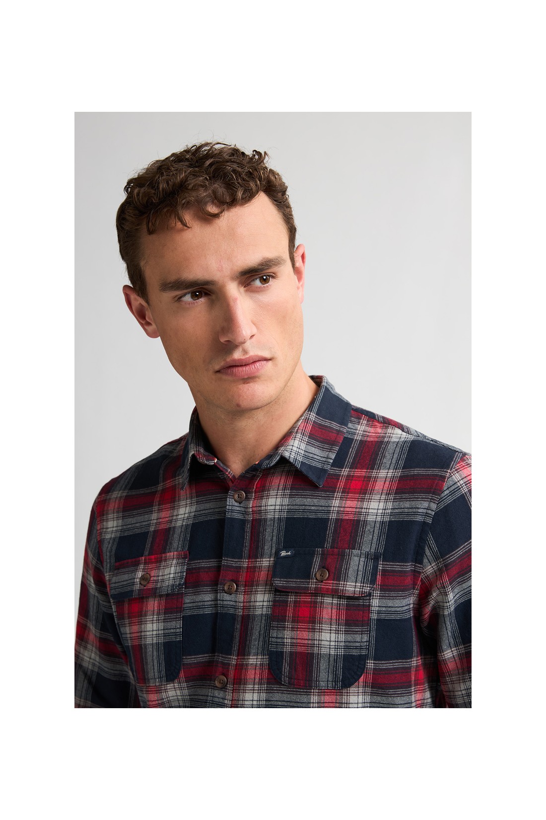 Camisa de cuadros en tonos rojos, grises y azul marino. Diseño clásico de Petrol Industries con tejido cálido y corte regular para un look casual y cómodo.