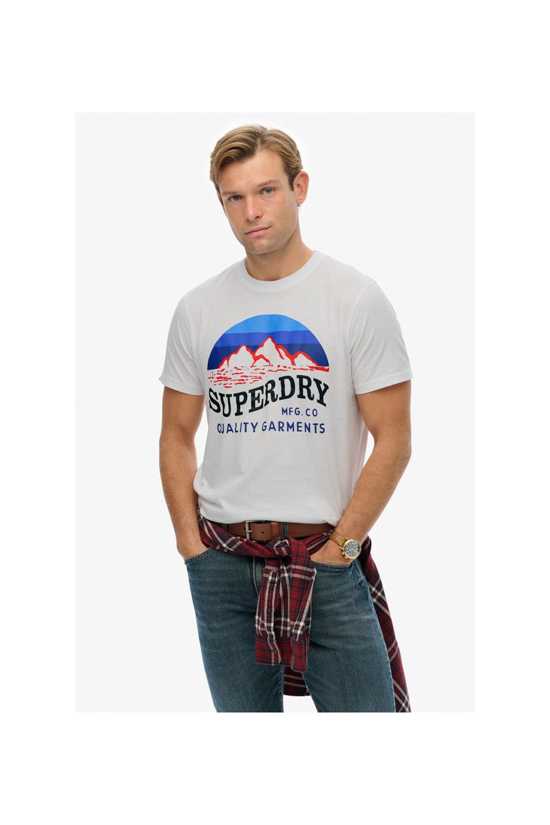 Camiseta de manga corta Superdry Great Outdoors Relaxed con gráfico frontal, corte cómodo y tejido suave de algodón. Perfecta para looks casuales y urbanos.
