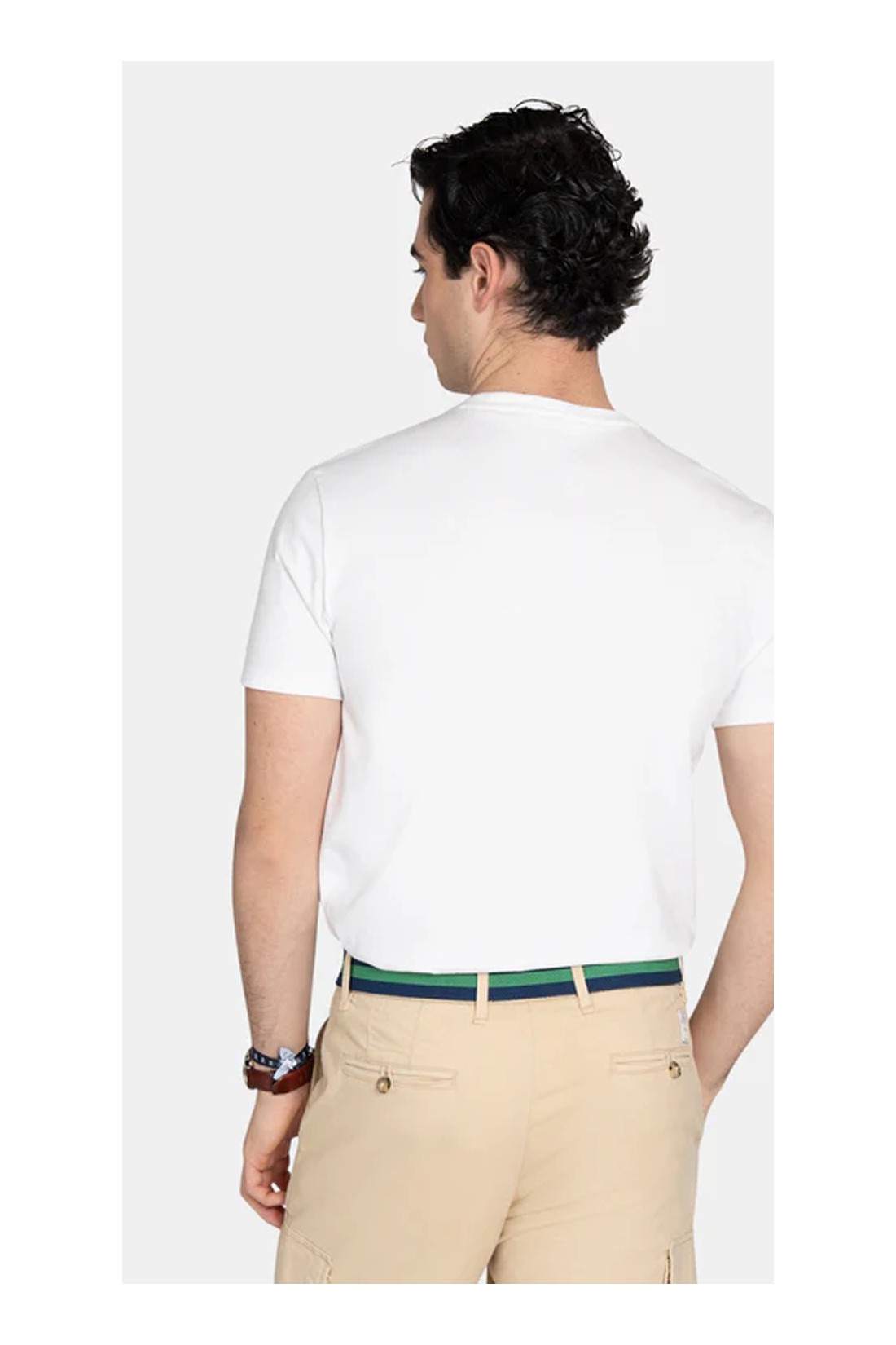 Encaja con bermudas, vaqueros o chinos, siendo una opción rápida y efectiva para crear conjuntos veraniegos con estilo.