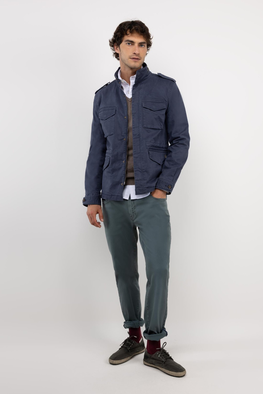 Esta chaqueta de estilo utilitario en color marino combina diseño funcional con detalles bien pensados. Incorpora múltiples bolsillos de solapa para llevar lo esencial de forma ordenada, mientras que su corte estructurado le otorga presencia sin perder practicidad. Las costuras reforzadas y el acabado resistente aportan carácter sobrio al conjunto. Perfecta para completar looks urbanos con personalidad, combina con jeans, chinos o incluso prendas más formales gracias a su estética versátil.