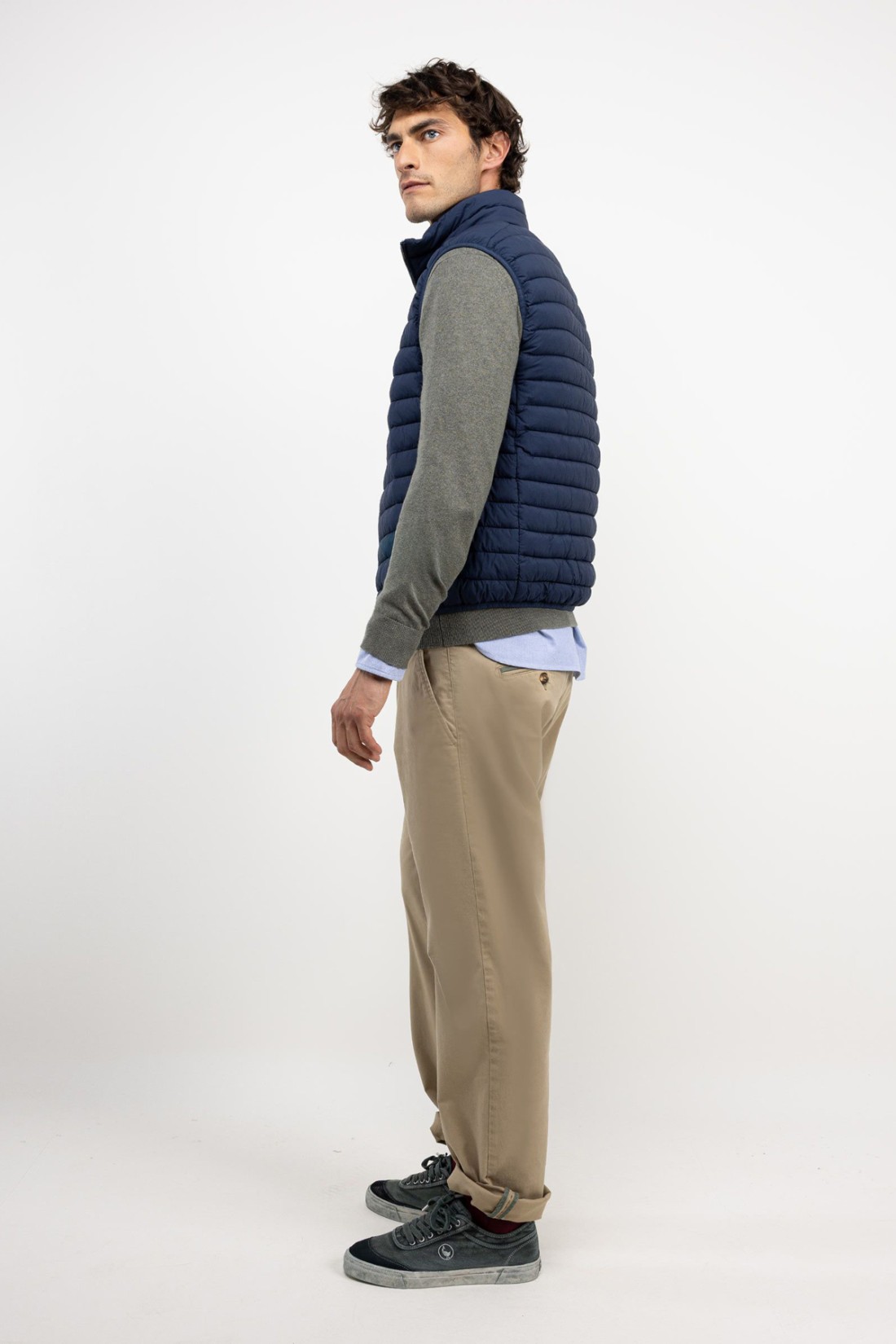 Este chaleco acolchado en tono marino combina diseño sobrio con funcionalidad pensada para el uso diario. Su construcción ligera proporciona abrigo sin añadir peso excesivo, y su corte estilizado lo hace fácil de coordinar sobre camisas, jerseys o camisetas. Los bolsillos laterales ofrecen espacio discreto para llevar pequeños objetos esenciales. Su acabado ayuda a repeler la humedad leve, haciendo de esta prenda una opción práctica para jornadas cambiantes.