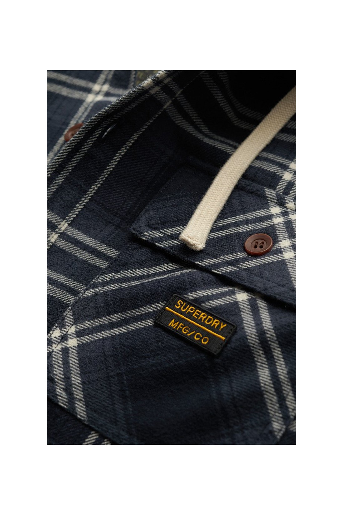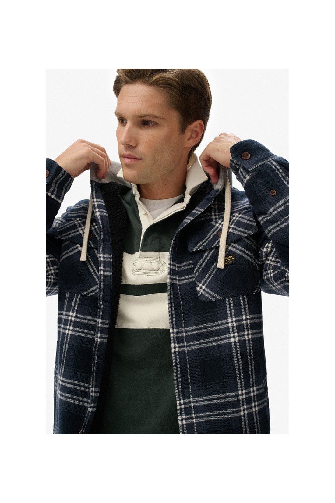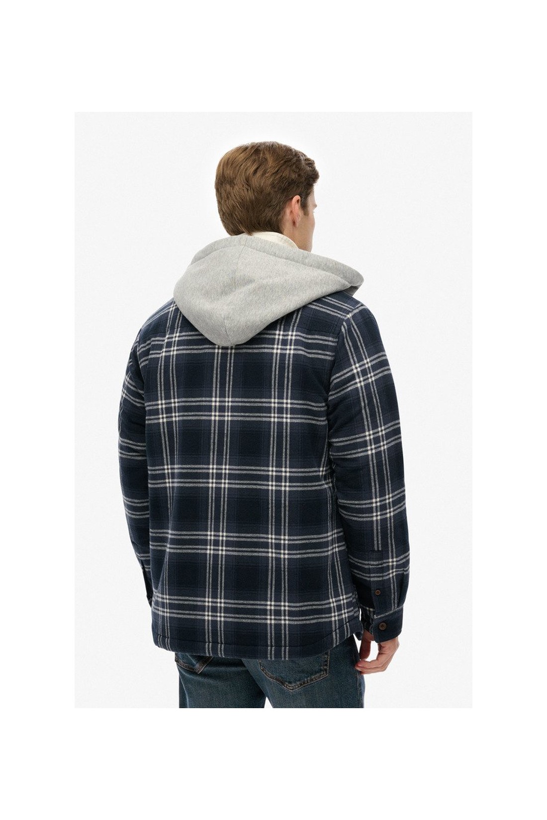 Cazadora Superdry de cuadros con capucha ajustable y forro cálido. Ideal para un look casual y funcional.