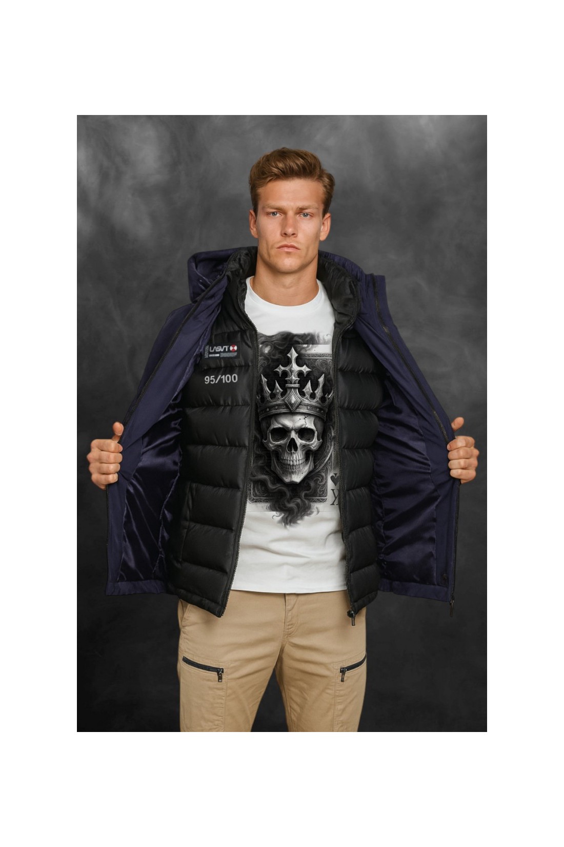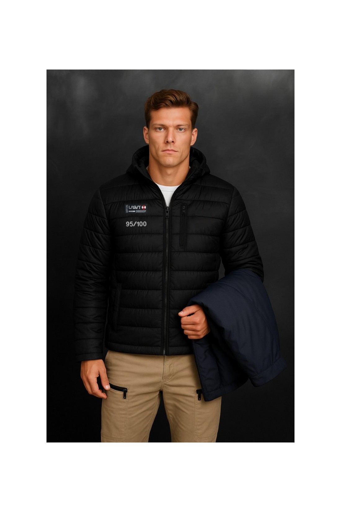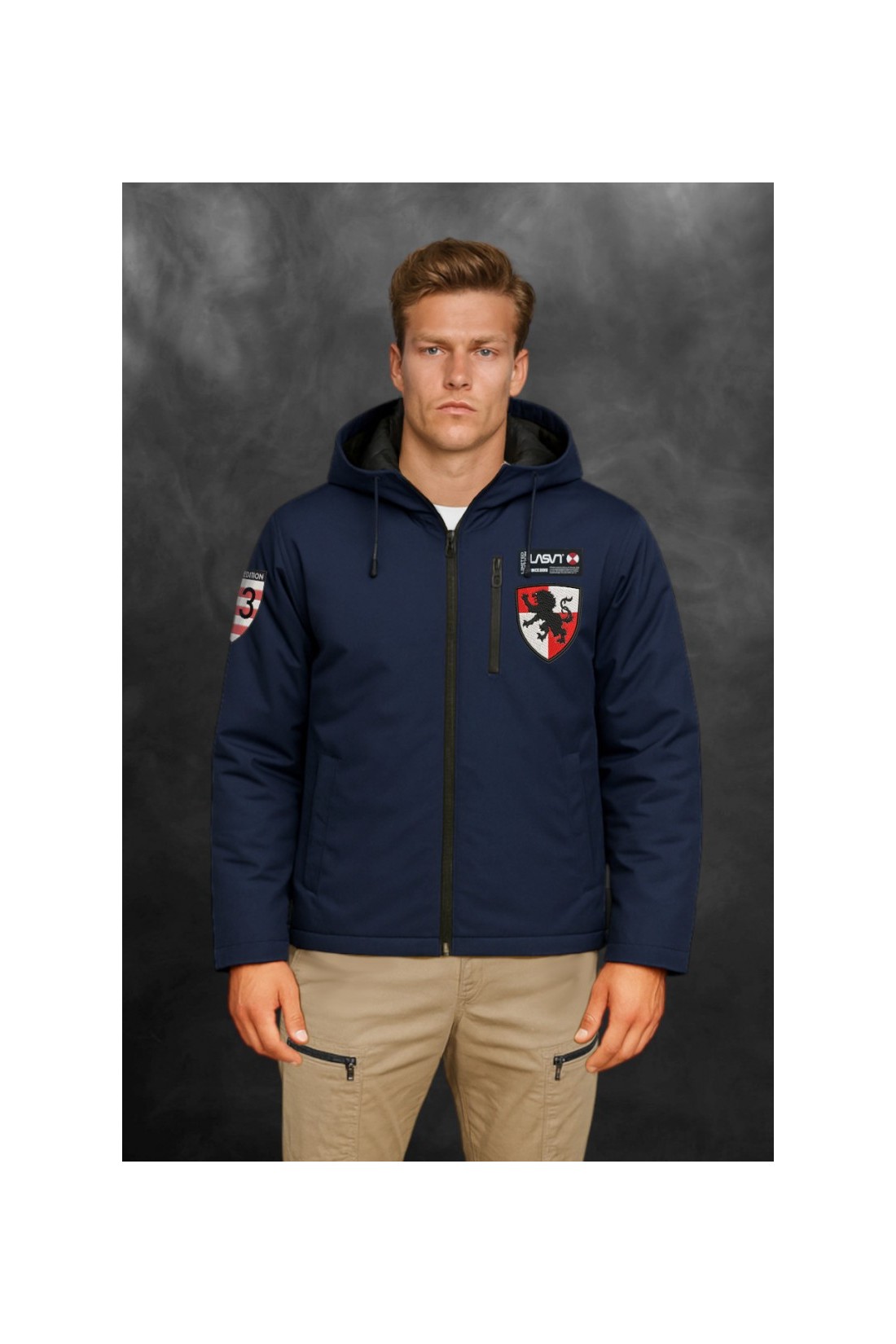 La capucha integrada, los cierres y los elementos distintivos refuerzan su carácter práctico y su estilo cuidado.