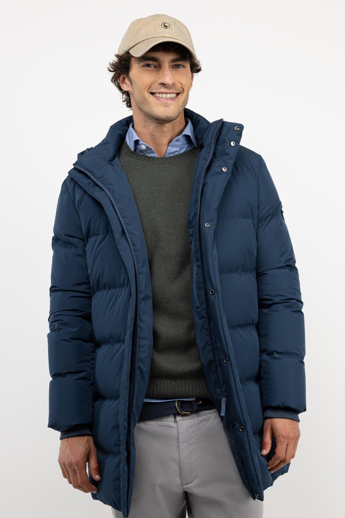 Este abrigo plumas largo en azul destaca por su balance entre diseño estético y funcionalidad térmica. Su longitud envolvente proporciona protección extendida frente al viento y las bajas temperaturas, mientras que el acolchado integral mantiene el calor corporal de forma uniforme. Los bolsillos laterales discretos permiten llevar lo esencial sin alterar la silueta, y el acabado exterior ofrece resistencia frente a la humedad ligera. Perfecto para usarse sobre capas intermedias durante el invierno, este abrigo combina presencia y ligereza, siendo una pieza diseñada para enriquecer tu armario invernal con estilo.
