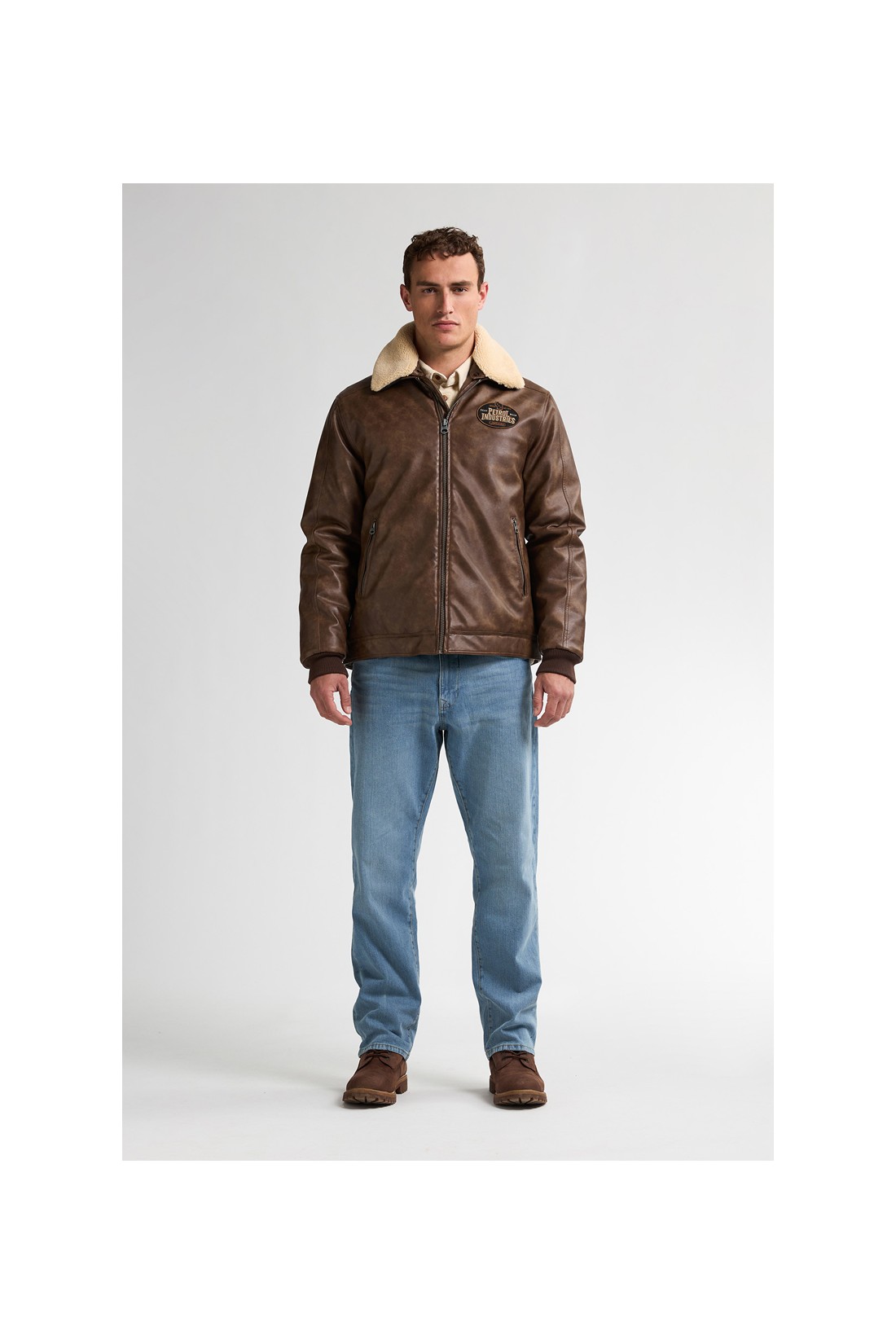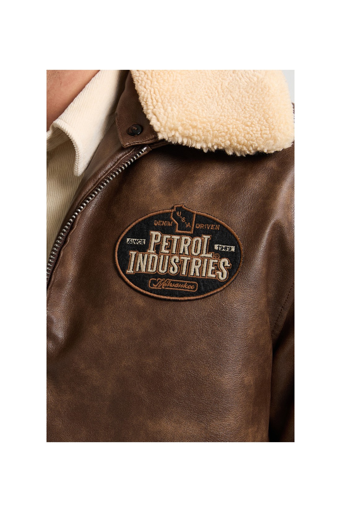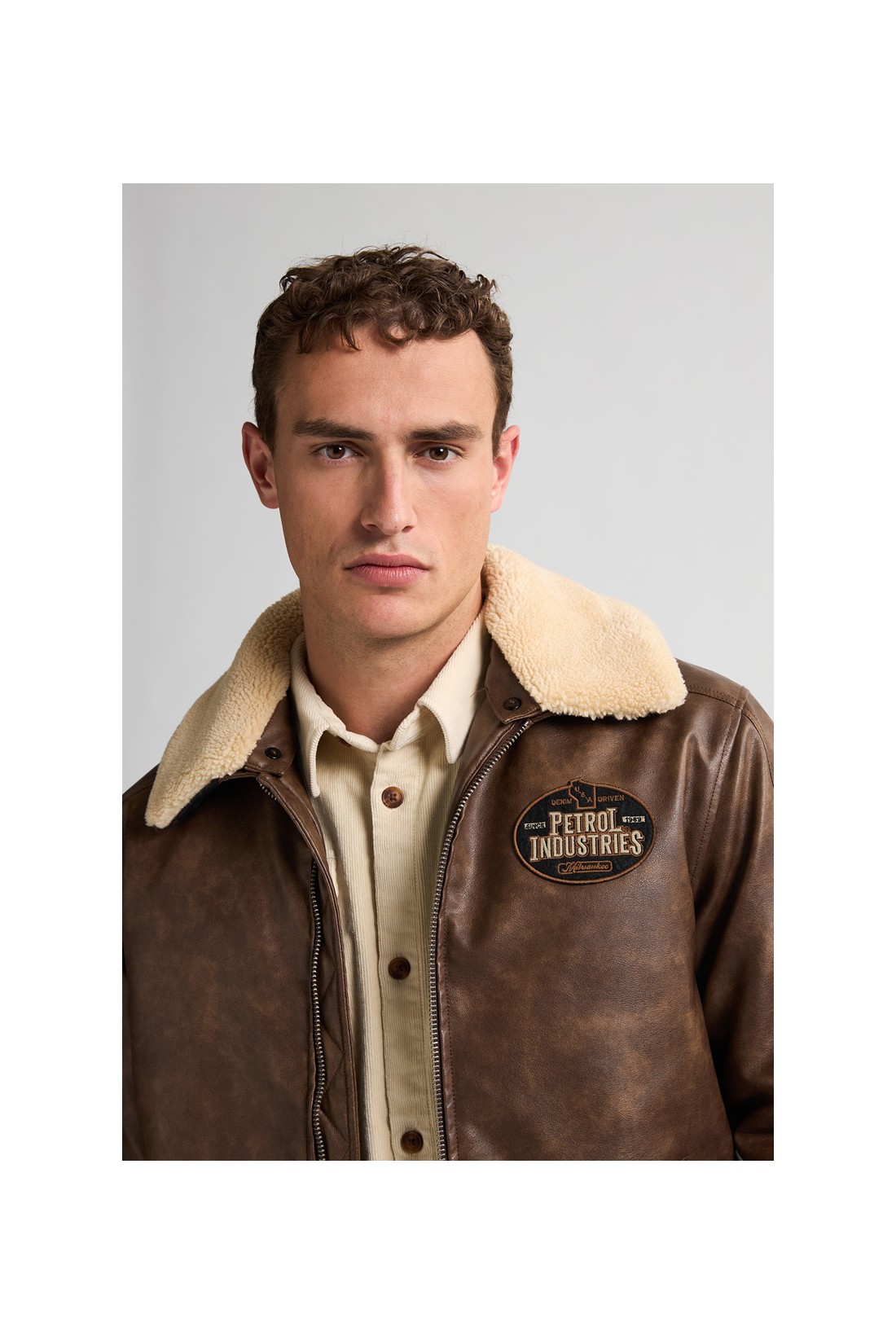 La cazadora de piel vegana de Petrol Industries se inspira en las clásicas chaquetas de vuelo, combinando el espíritu retro con la comodidad y el diseño actual.