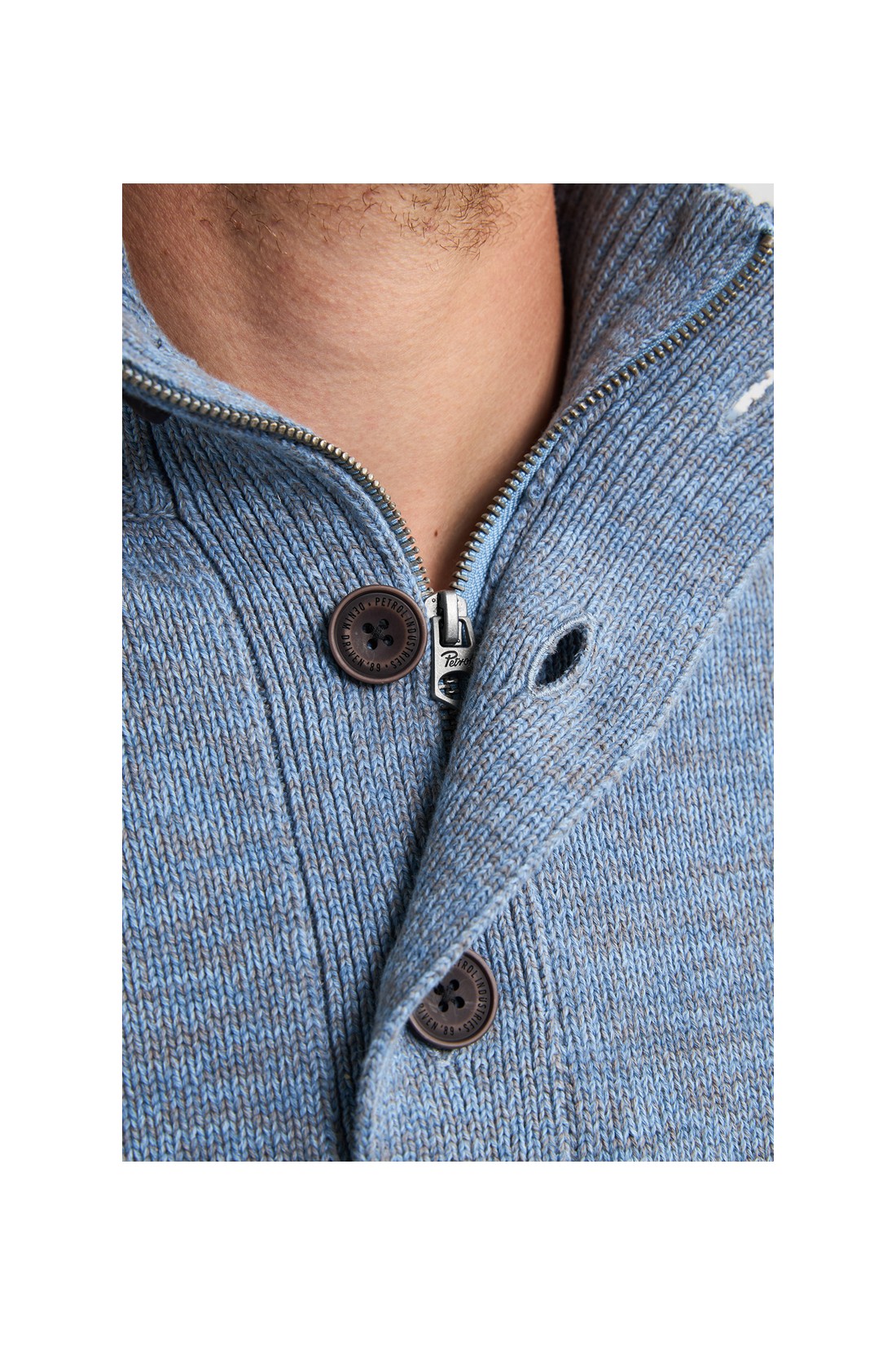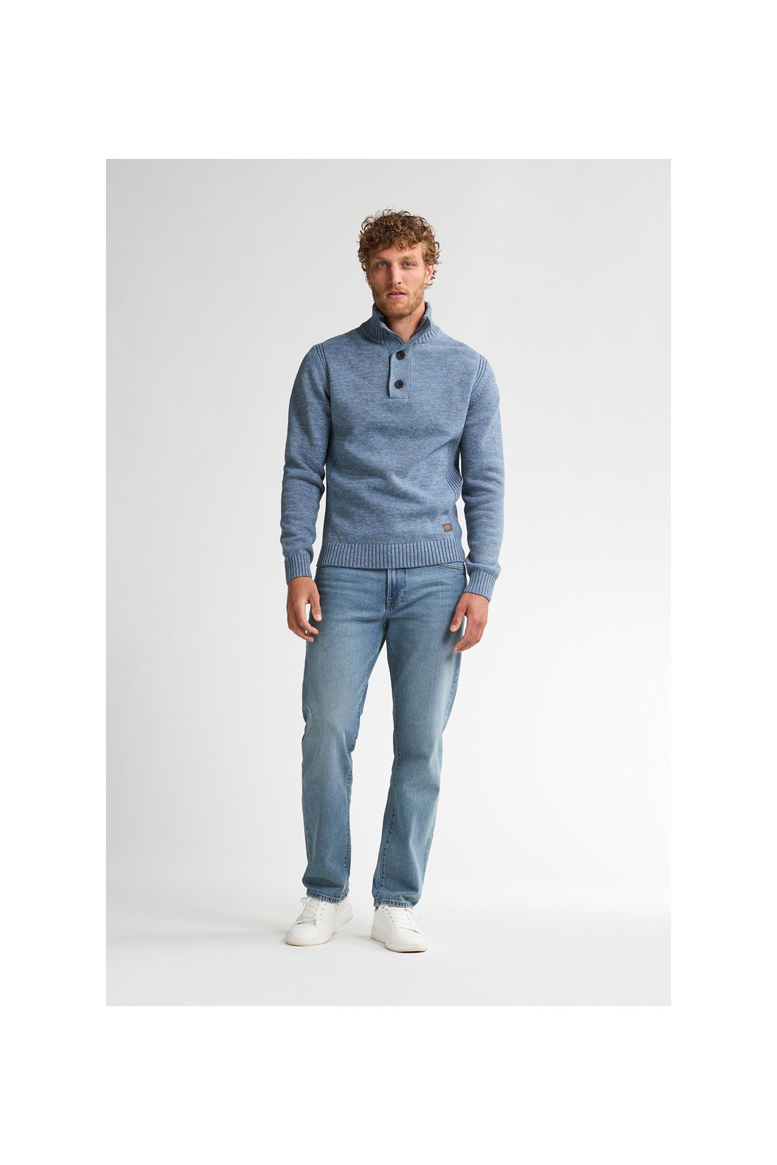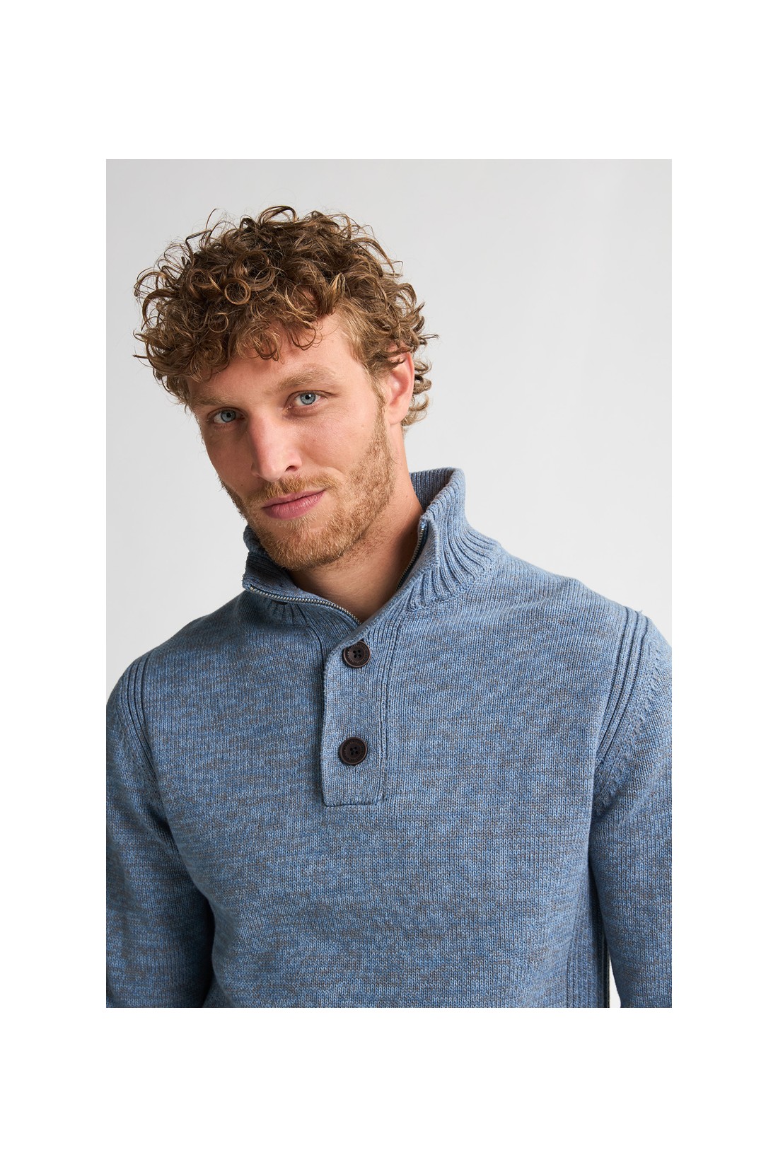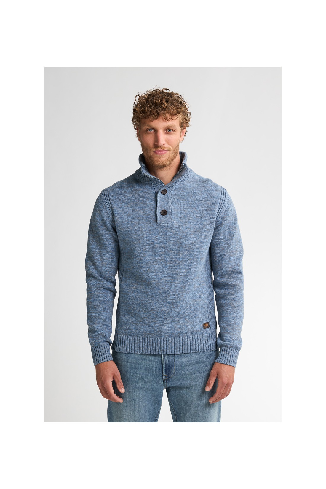 Jersey de cuello alto con botones en punto grueso azul. Una prenda cómoda, cálida y con el estilo inconfundible de Petrol Industries.