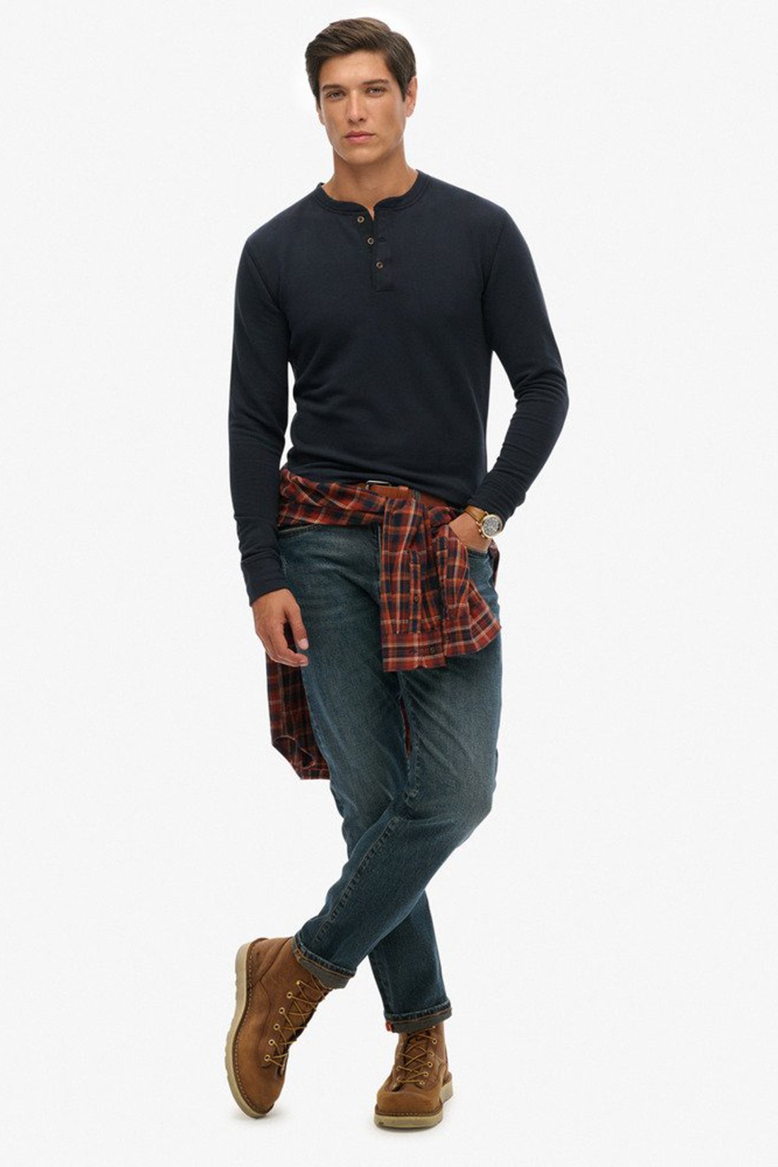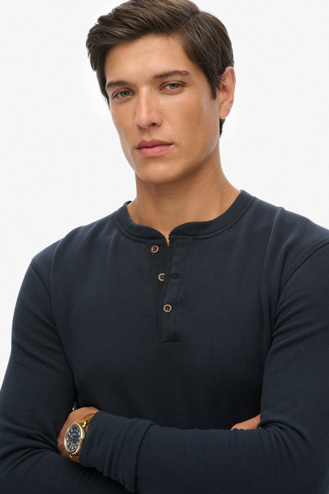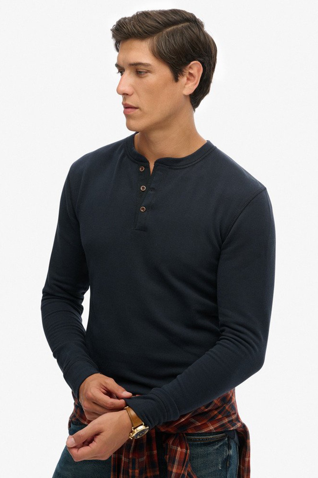 Camiseta de manga larga con cuello mao y tapeta de botones, ideal para un estilo casual y desenfadado con el sello Superdry.