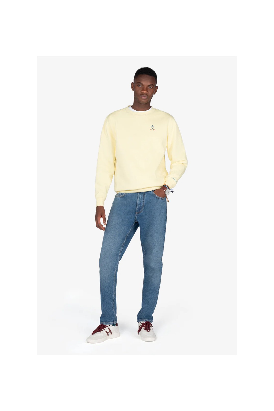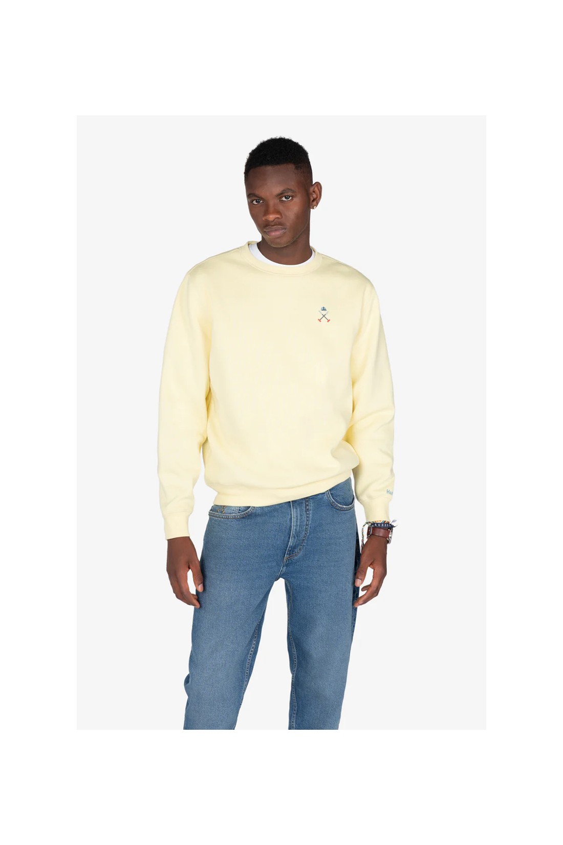Sudadera de mezcla de algodón con cuello redondo, acabados acanalados en contraste y detalles bordados que le confieren carácter.