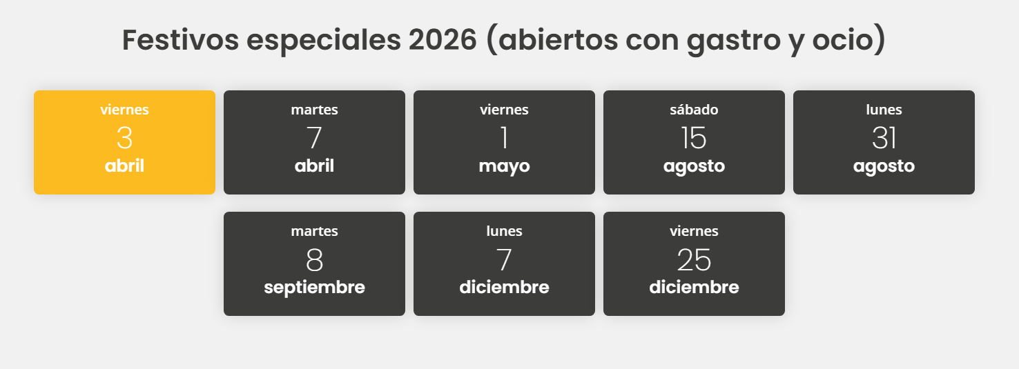 - Coches eléctricos: El aparcamiento dispone de puntos de carga para vehículos eléctricos, situados en zonas señalizadas.